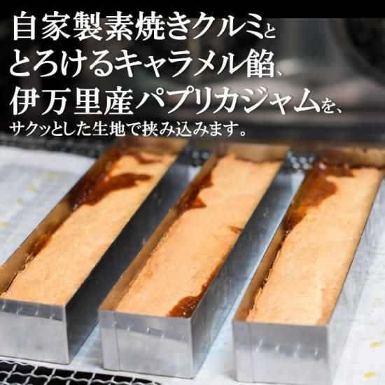 そんな絶品のくるみ入りキャラメル餡とパプリカジャムを、小麦粉の荒さや生地の厚さ、焼時間にこだわり抜いた、サクッとしたタルト生地に包み込みます。形状は片手で食べやすいスティック状でつまみやすく、おやつにピッタリ。