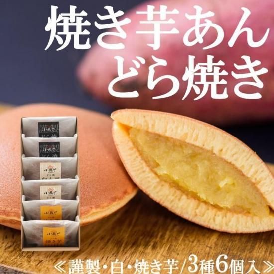 | 【原材料】 | 焼き芋あんどら焼き:さつまいも(佐賀県伊万里市産)、砂糖(きび砂糖、白ざら糖)、鶏卵、小麦粉、餅米水飴、蜂蜜、みりん/重曹、(一部に卵・小麦粉を含む) どら焼き:砂糖(きび砂糖、白ざら糖、和三盆糖)(国内製造)、鶏卵、小豆、小麦粉、蜂蜜、水飴、みりん/重曹、(一部に卵・小麦を含む) 白小豆どら焼き:砂糖(きび砂糖、白ざら糖、和三盆糖)(国内製造)、鶏卵、白小豆、小麦粉、蜂蜜、水飴、みりん/重曹、(一部に卵・小麦を含む) |