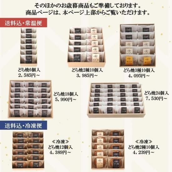 | 【保存方法】 | ・賞味期限はそれぞれ未開封の場合に限ります。 ・どら焼は直射日光を避け、涼しい場所で保存して下さい。 |